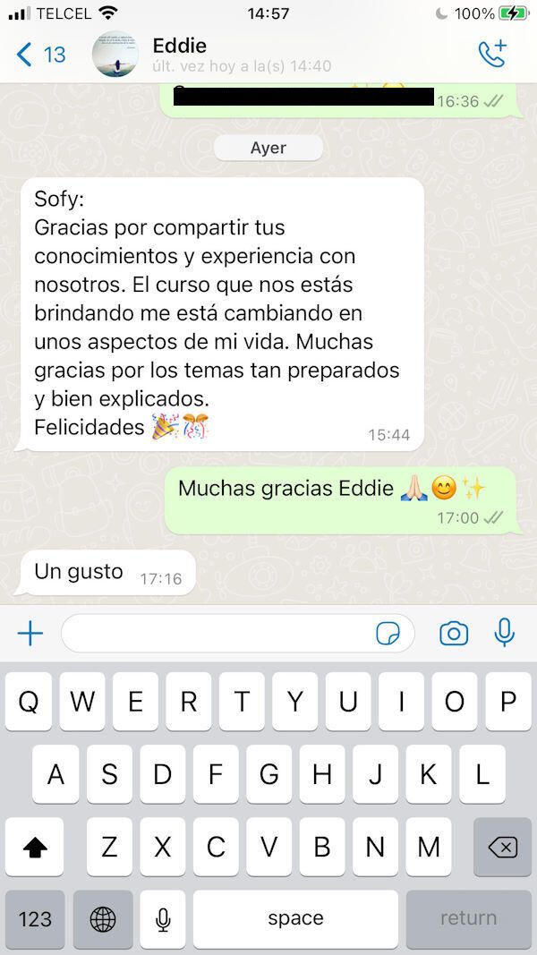 No te preocupes. Todas las sesiones se grabarán y estarán disponibles para todos los participantes. Además, podrás enviar tus preguntas y comentarios a través de nuestro grupo de WhatsApp o a mí directamente.